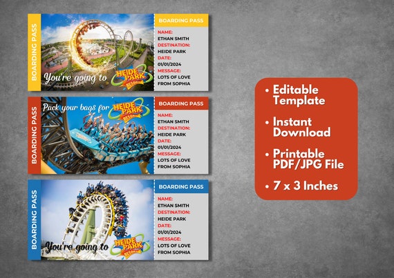 Editable Heide Park Surprise Ticket Template Printable Heide Etsy